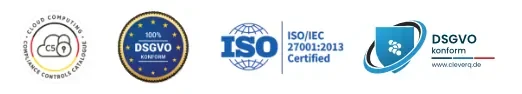 On the one hand, we cooperate with renowned hosters (such as Hetzner) to ensure that our digital services are available, performant and protected at all times. On the other hand, we comply with all requirements of the DSGVO regulation and periodically renew the ISO 27001 certificate (Information security management systems).